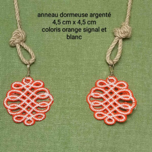 Boucles d’oreilles brodées. Très légères. Beaucoup de coloris au choix. Clip d’oreilles ou crochets d’oreilles. Dorées ou argentées.